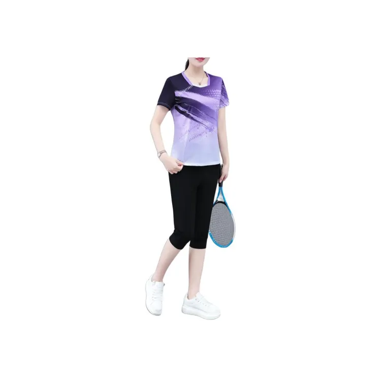 Комплект одежды (Фиолетовый топ + Черные капри штаны)