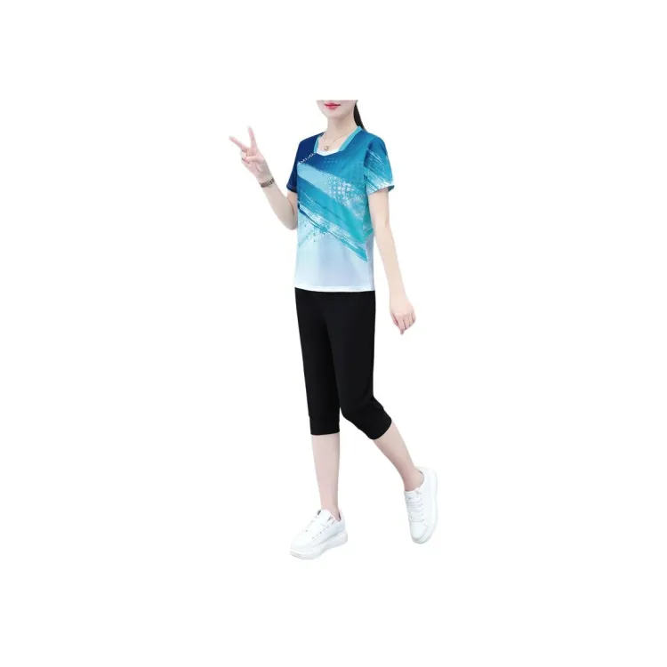 Комплект:Комплект одежды (Зеленый топ + Черные капри штаны)
