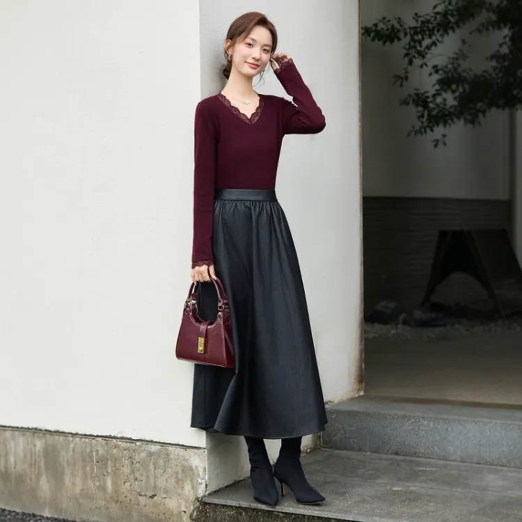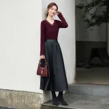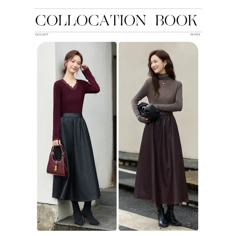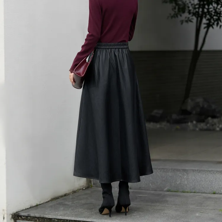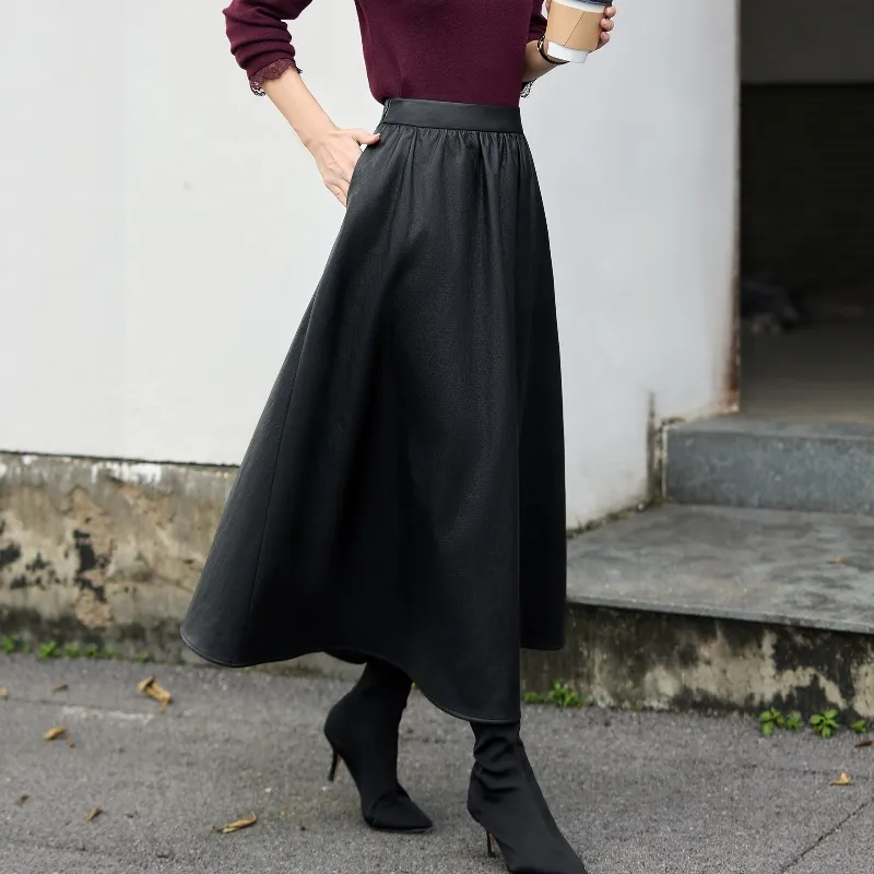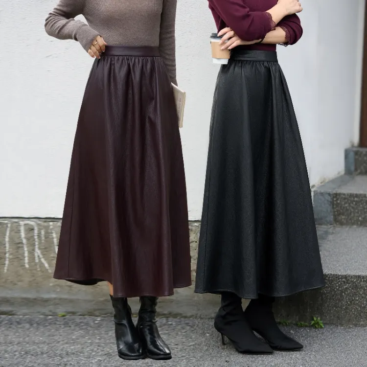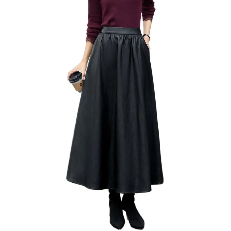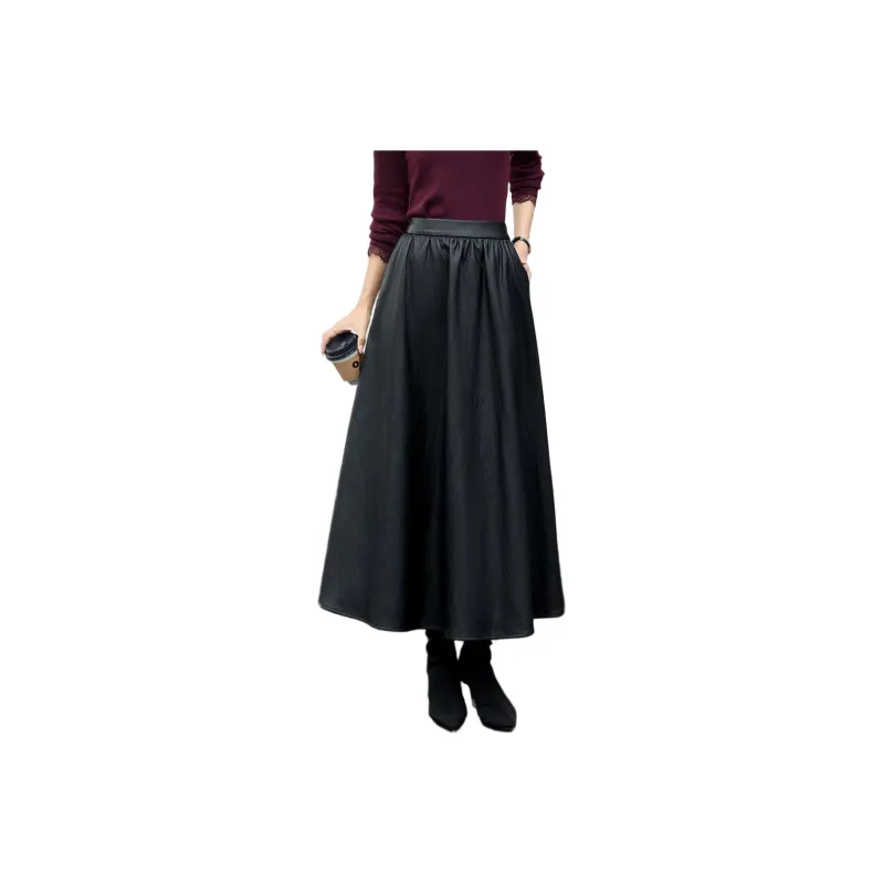 ZUOSAISI Теплая зима Кожа Длинный Юбка Женские Черный