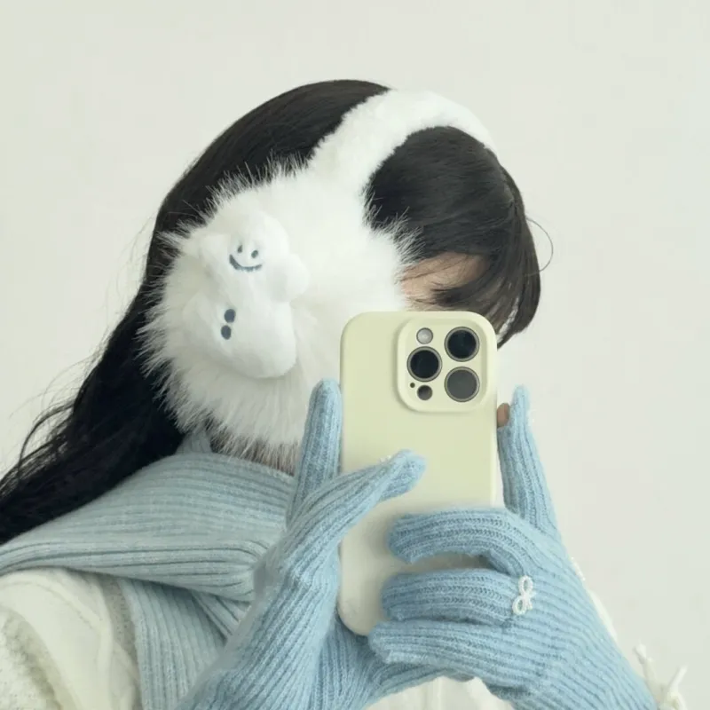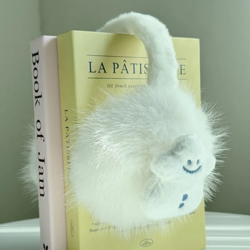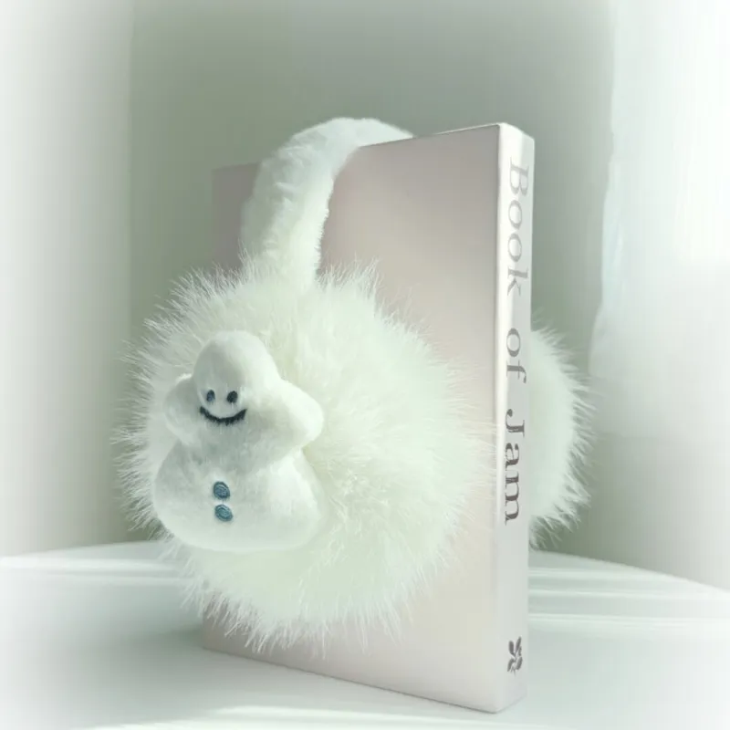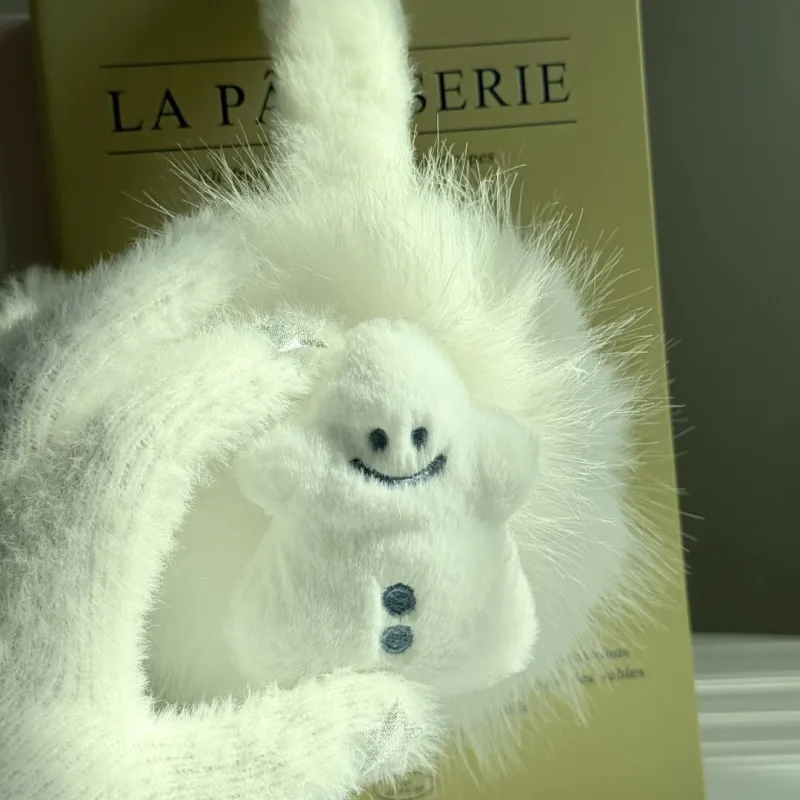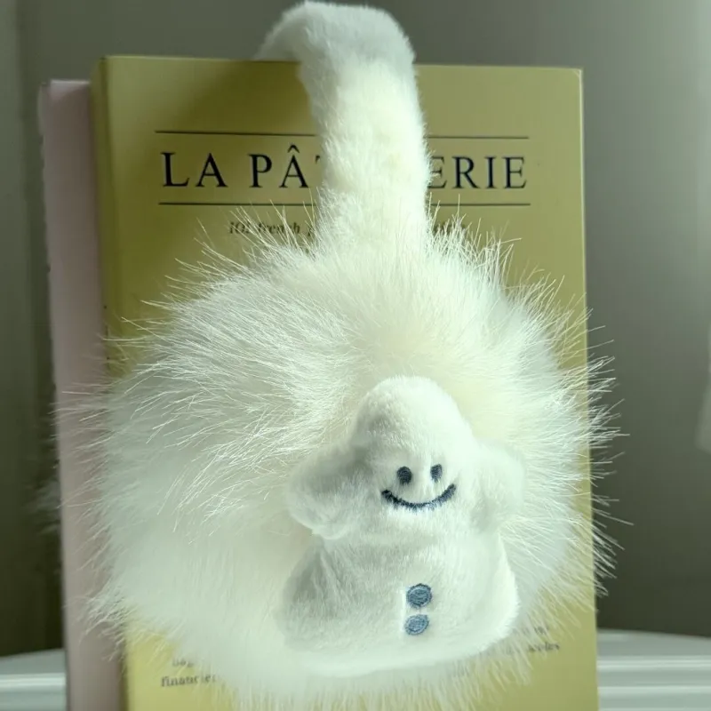 [Овальный коррекция лица] Белый Снеговик Наушники — меховые капюшоны