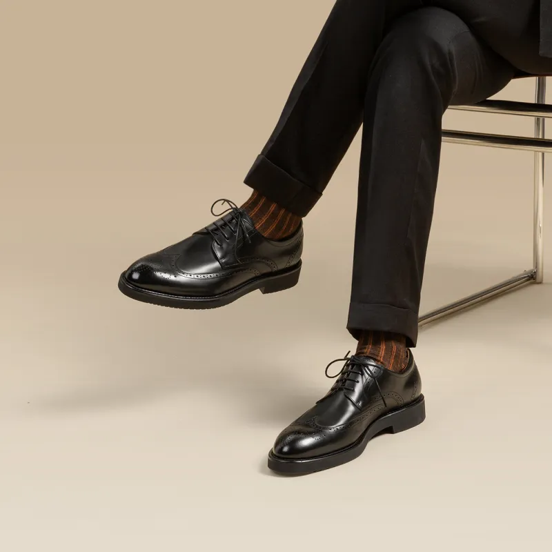 Zuti Британский Бизнес Телячья кожа Derby Обувь Туфли Мужской Черный