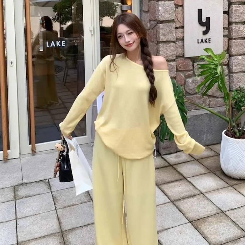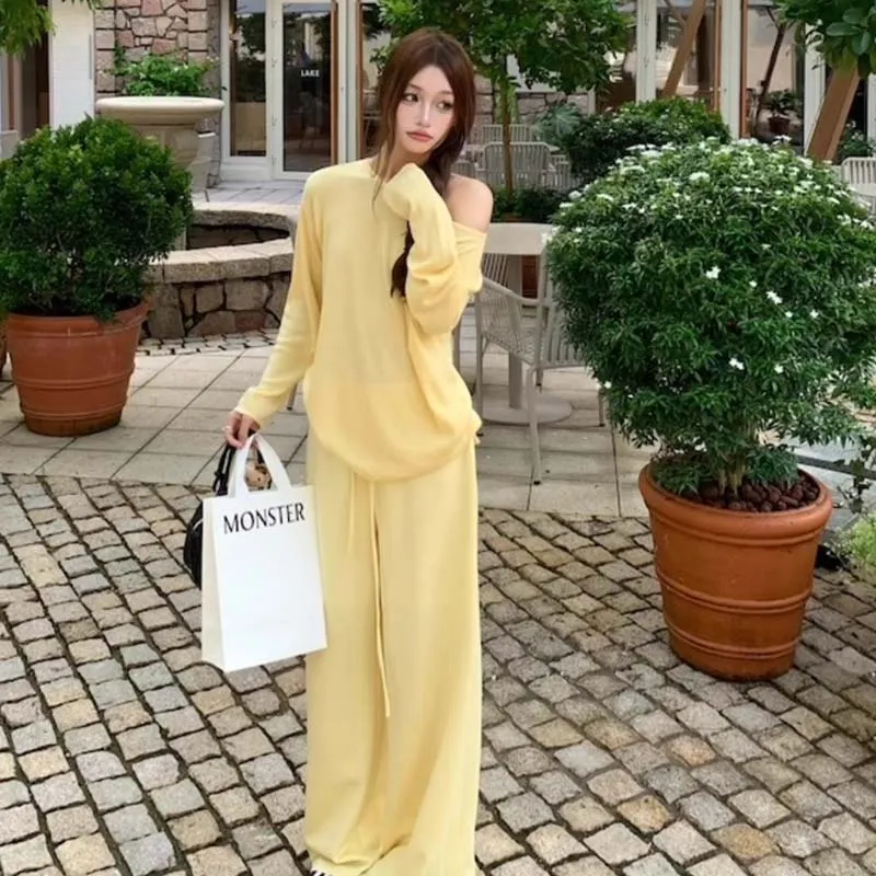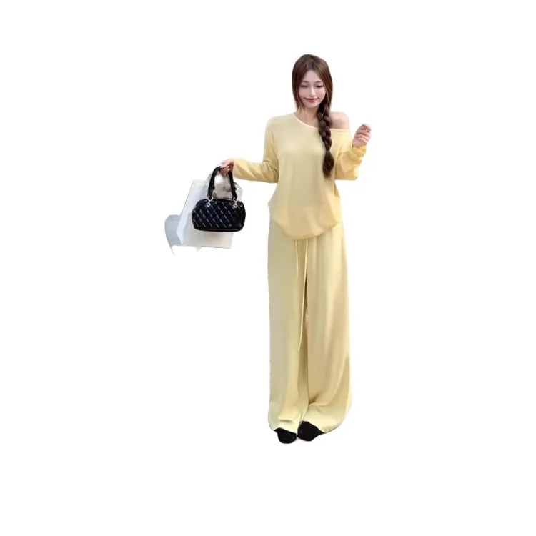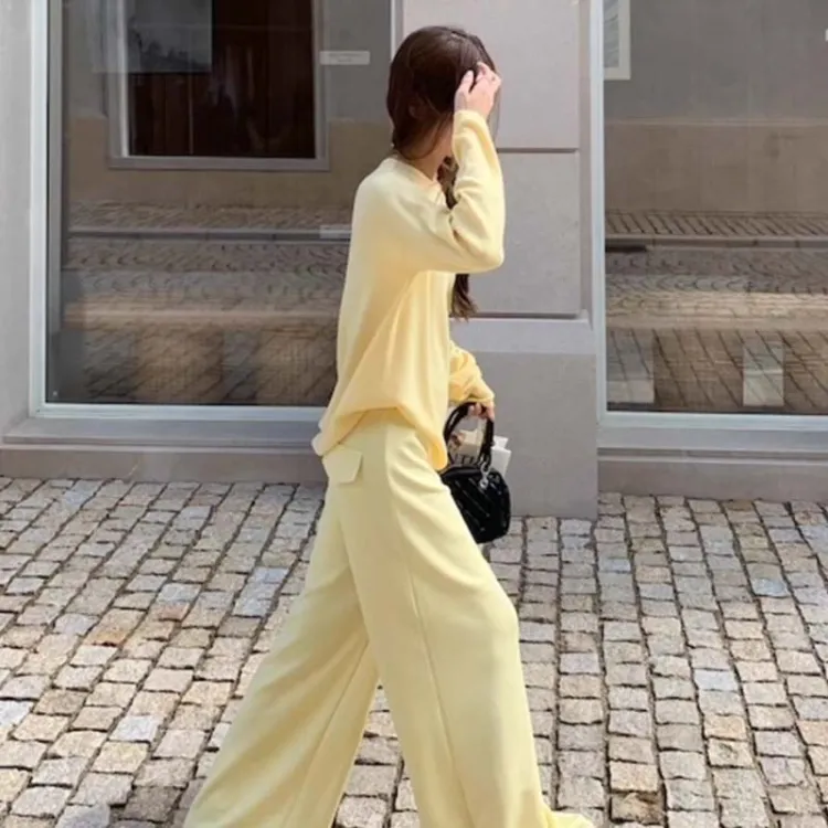 ZVJH Желтый Комплекты Одежды Топ+Штаны Женские Повседневные Костюмы