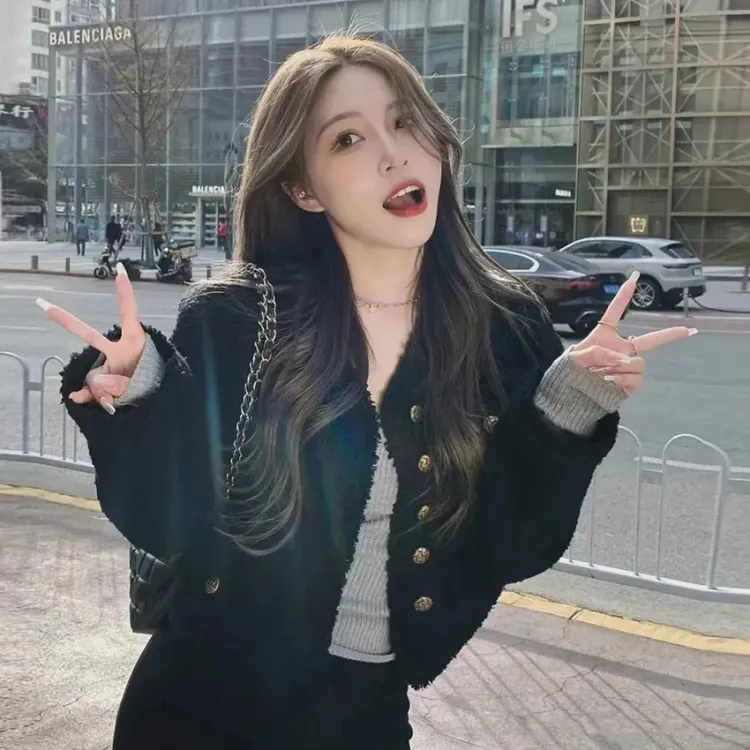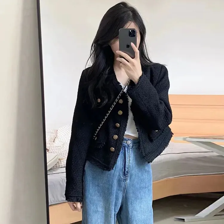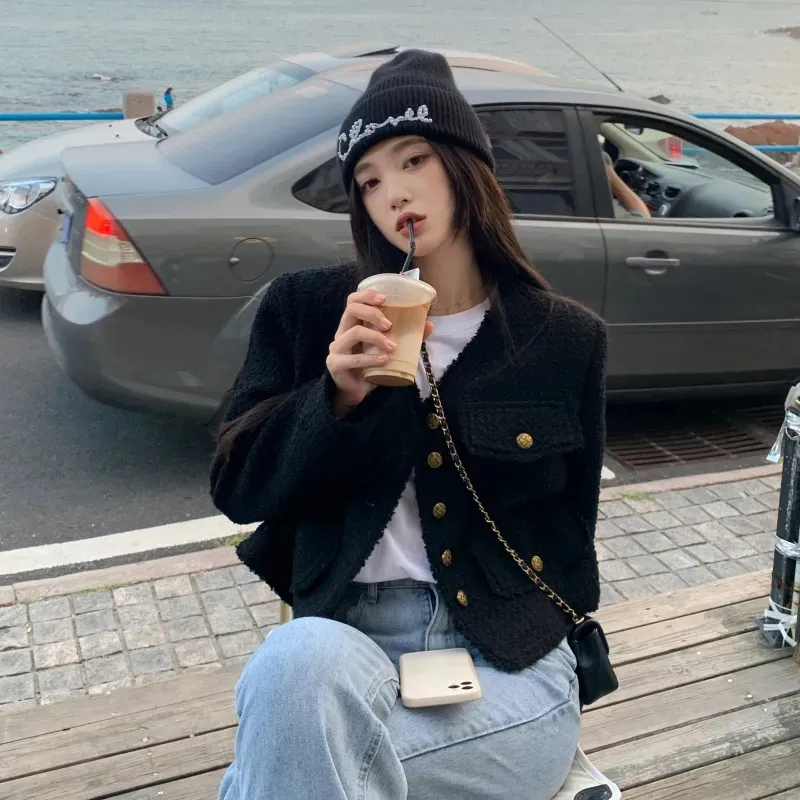 ZVJH Черное Женское Короткое Пальто