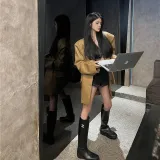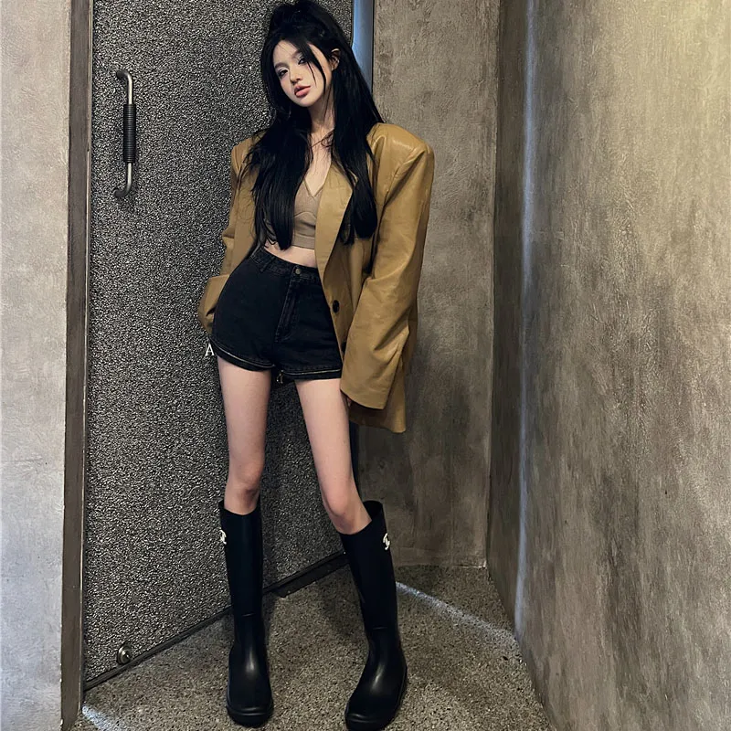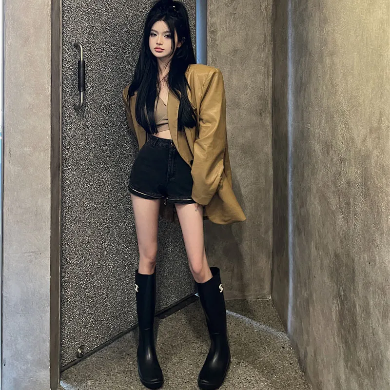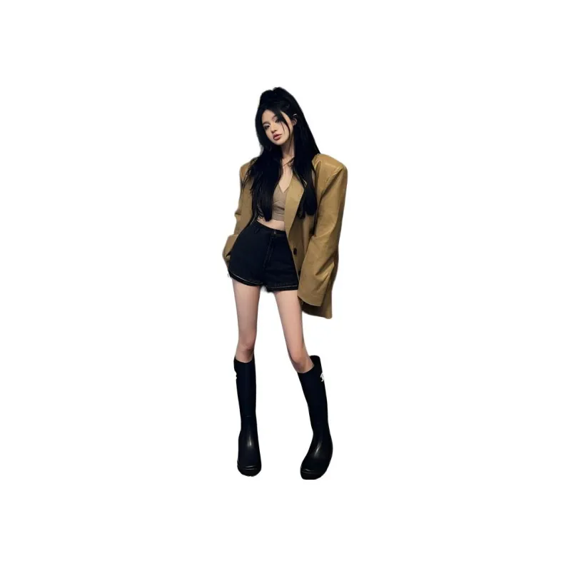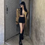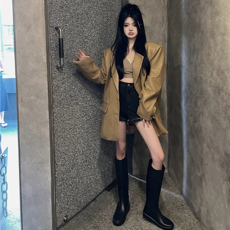 ZVJH Хаки Женские Кожаные Куртки