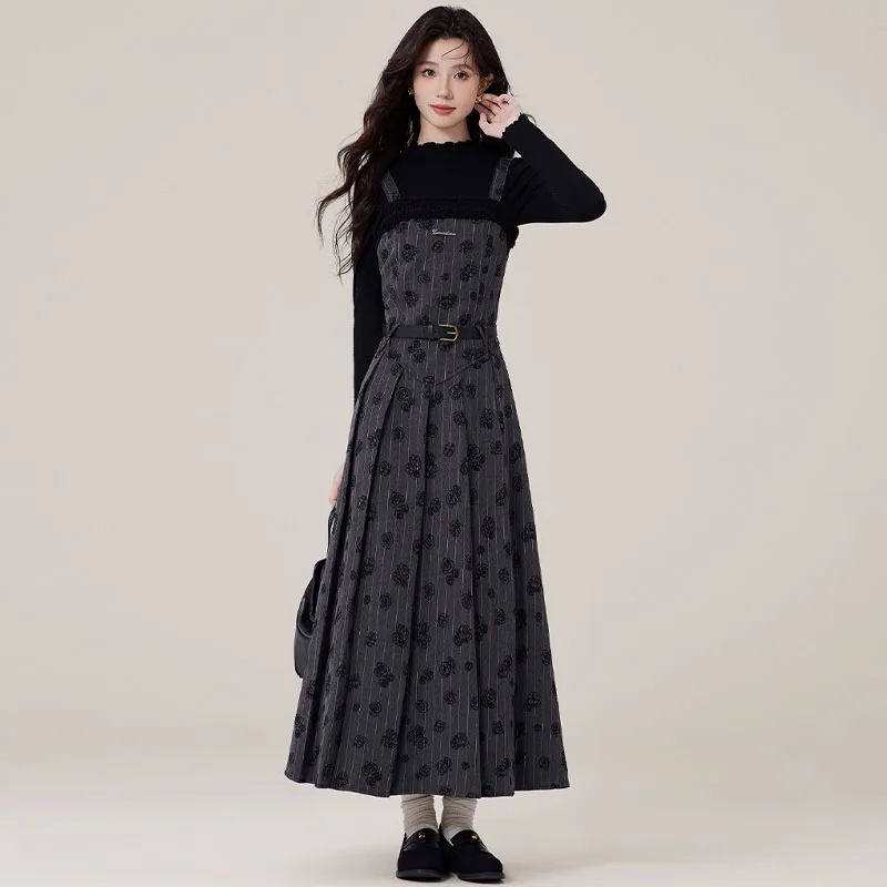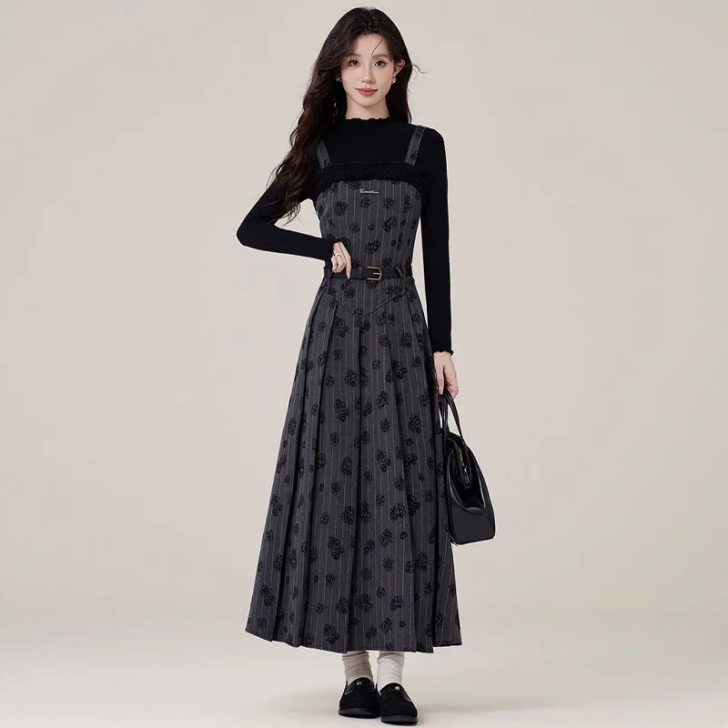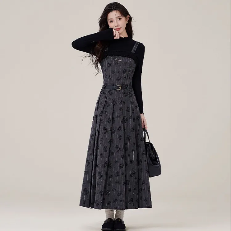 Комплект одежды: Юбка на подтяжках + Трикотаж + Ремень