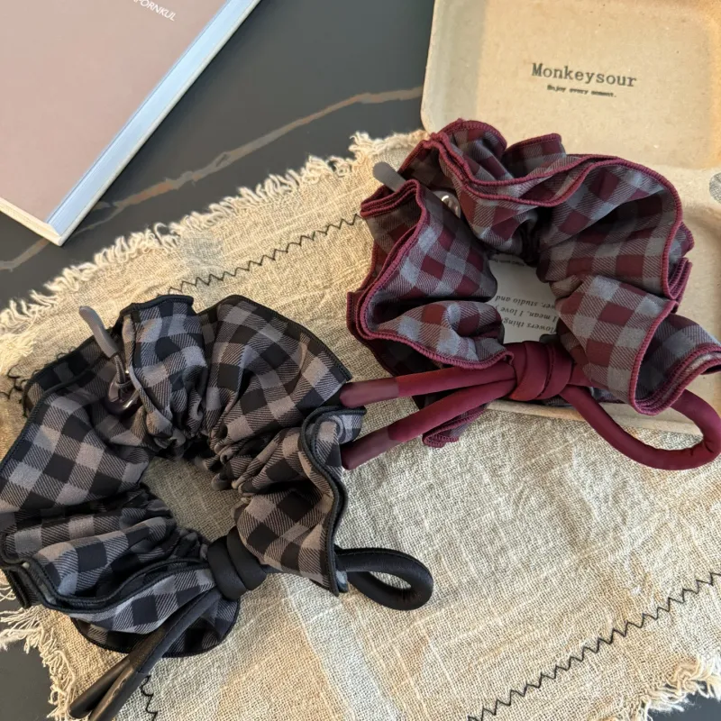 Стиль:Черный, серый, клетка, резинка для волос
