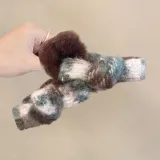 Коричневый фиолетовый бант заколка-коготь (13 см)