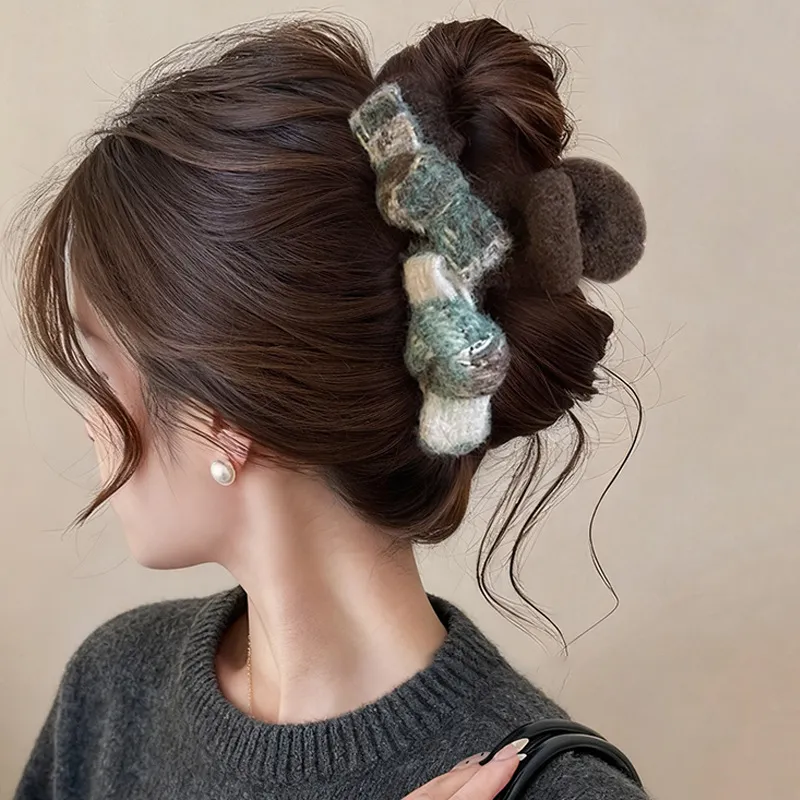 Стиль:Зеленый заколка-коготь для волос в форме банта (13 см)