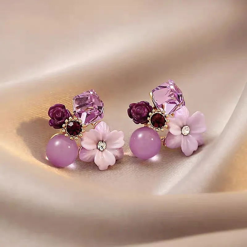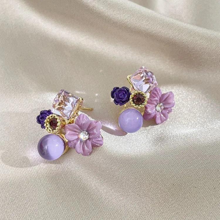 Стиль:Серьги-кольца фиолетового цвета с цветочным дизайном
