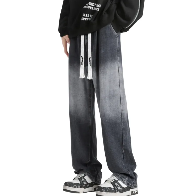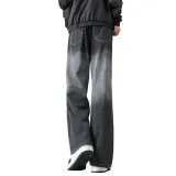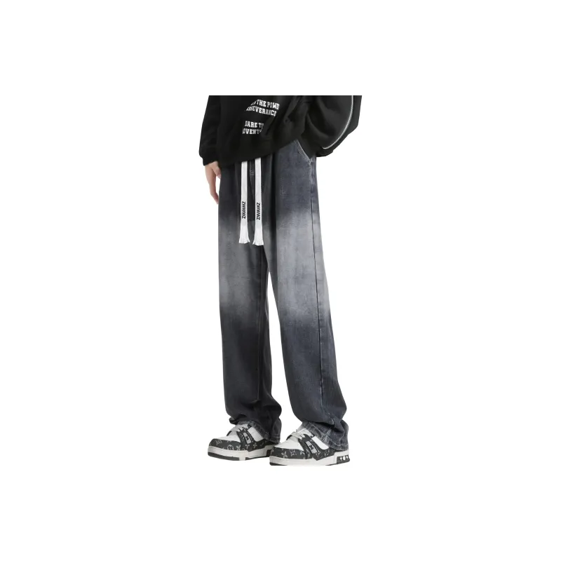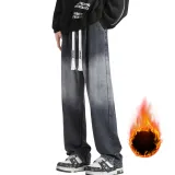 ZWWWZ Черный Серый [Утолщенный и с флисовой подкладкой] Унисекс Джинсы