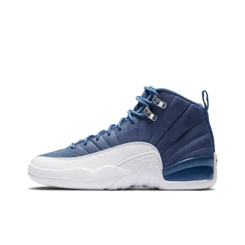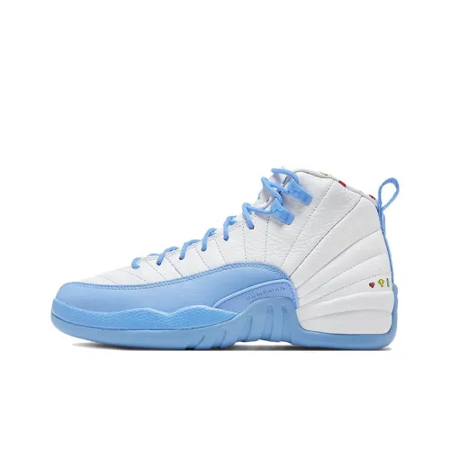 Jordan Air Jordan 12 Retro 'Emoji' Кожа Удобные Высокие Детские Баскетбольные Кроссовки Белый Синий