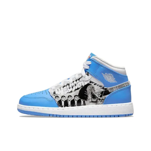 Jordan Air Jordan 1 MID Game Winner Кожа Устойчивая к истиранию Верх Детские Баскетбольные Кроссовки Синий Черный Белый