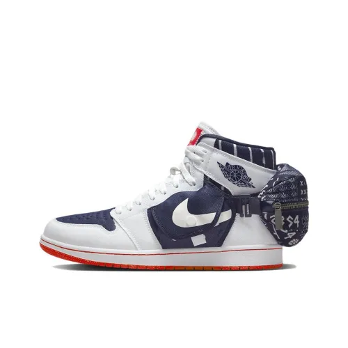 Jordan Air Jordan 1 Utility 'Quai 54' Высокие Топы Винтажные Баскетбольные Кроссовки Унисекс Белый Синий