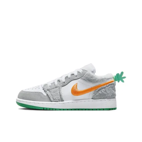 Jordan Air Jordan 1 Мода Низкие Баскетбольные Кроссовки Винтажные Унисекс Серый Белый Оранжевый
