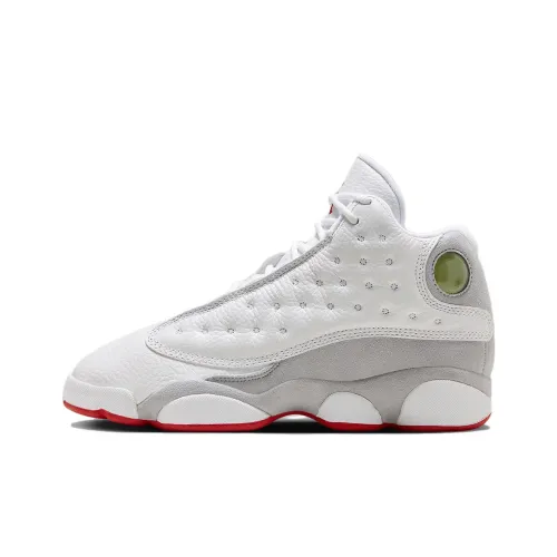 Jordan Air Jordan 13 Противоскользящие Анти-КИК Амортизация MID Детские Баскетбольные Кроссовки Белый Серый Красный