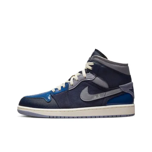 Jordan Air Jordan 1 MID SE Технология Мода MID Топ Винтажные Баскетбольные Кроссовки Мужские Черные Синие