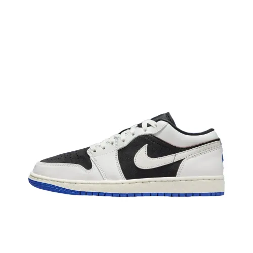 Jordan Air Jordan 1 Износостойкие Дышащие Низкие Баскетбольные Кроссовки Мужские Черные Белые и Синие