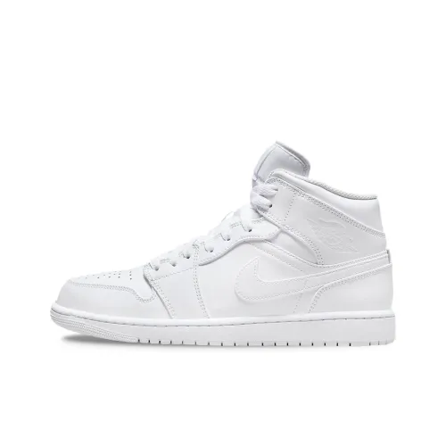 Jordan Air Jordan 1 MID 'Triple White' Кожа Амортизация Противоскользящий Устойчивый к истиранию MID Верх