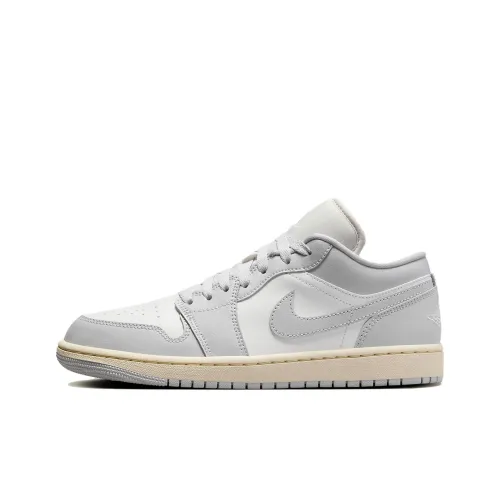Jordan Air Jordan 1 Кожа Устойчивая к истиранию Низкий Верх Винтажные Баскетбольные Кроссовки Мужские Серые