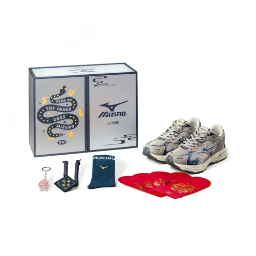 Mizuno Racer S Устойчивые к истиранию низкие беговые кроссовки унисекс Серый Синий CNY Коробка Потертый