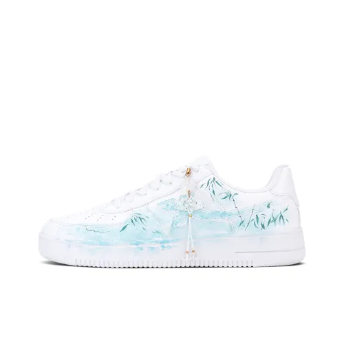 Warrior Air Force 1 Китайский стиль Акварельный Бамбук Низкие Кроссовки для скейтбординга Унисекс Черно-белые