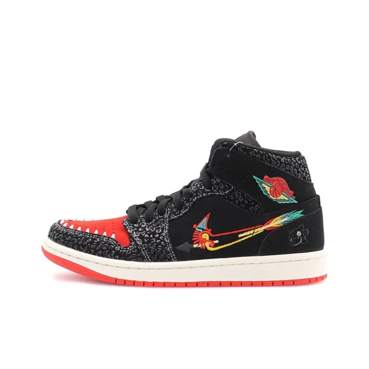 Jordan Air Jordan 1 MID SE 'siempre Familia' MID Топ Винтажные Баскетбольные Кроссовки Унисекс Черный Красный