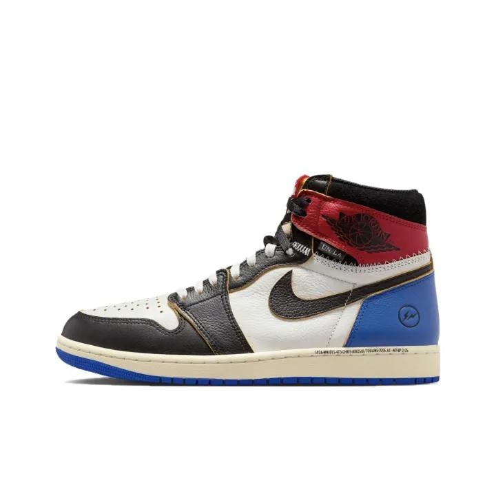 Jordan x UNION X Fragment Design Air Jordan 1 High Топ Винтажные Баскетбольные Кроссовки Унисекс Черный Белый Синий