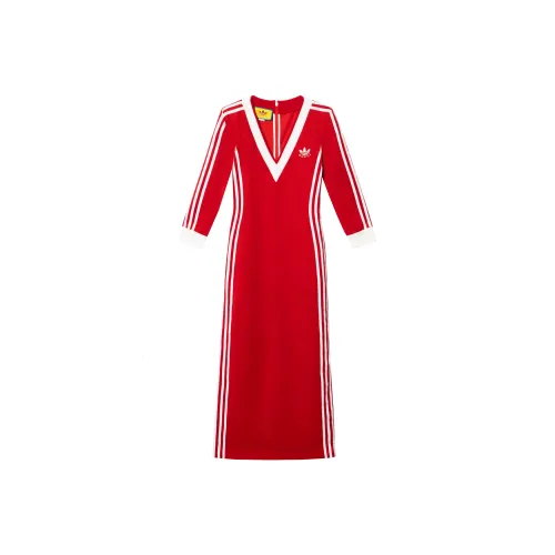 Adidas Originals 3 StripesClassics 3 Stripes Короткое Платье с Короткими Рукавами Женское Красное
